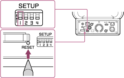 Użyj końcówki długopisu lub innego wąskiego przedmiotu, aby nacisnąć przełącznik RESET i przytrzymać go przez co najmniej 5 sekund.