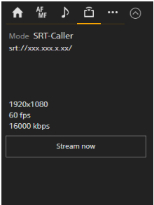 Quando definido para [RTMP] ou [SRT-Caller], a transmissão pode ser iniciada/parada neste ecrã.