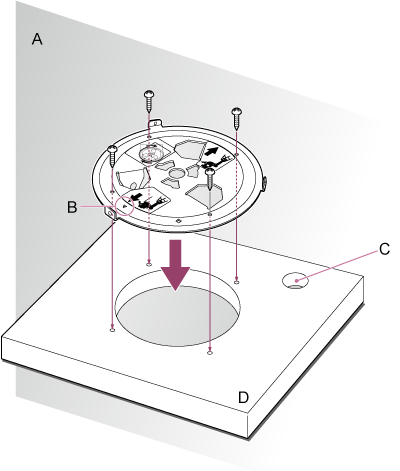 B: Suport de tavan (orificiu pe partea suprafeței de montare (Ø60))