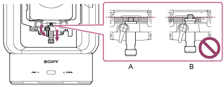 - Până când capul camerei nu este blocat din nou, există riscul ca acesta să se miște din loc sub acțiunea propriei greutăți. Susțineți capul camerei cu mâna în timp ce efectuați acțiunea.