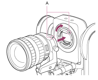 - Pentru a utiliza un obiectiv cu montură A, atașați un adaptor de montare a obiectivului (opțiune) la unitatea la și apoi fixați obiectivul cu montură A.