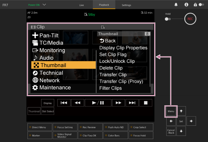 Când este apăsat butonul [Menu] de pe panoul de control GUI sau butonul MENU de pe telecomanda cu infraroșu, meniul camerei pentru configurarea diferitelor setări necesare pentru captură și redare este afișat pe panoul cu imaginea camerei.
