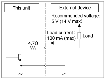 Puteți aprinde lampa de semnalizare a unui dispozitiv extern utilizând un semnal de la unitate, conectând pinul 3 și pinul 6 al conectorului OPTION așa cum se descrie mai jos.