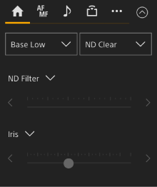 Function Referință FPS „Mișcare cu încetinitorul și rapidă” ISO/Gain „Setarea sensibilității de bază” și „Reglarea automată a amplificării” și „Reglarea manuală a amplificării” din „Reglarea amplificării” Exposure Index „Setarea sensibilității de bază”, „Modificarea distribuției zonelor întunecate și luminoase în imaginile înregistrate” Shutter „Reglarea automată a obturatorului” și “Reglarea manuală a obturatorului” din „Ajustarea obturatorului” Iris „Reglarea automată a diafragmei” și “Reglarea manuală a diafragmei” din „Ajustarea diafragmei” ND Filter „Despre filtrul ND” din „Reglarea nivelului de lumină (filtrul ND)” Scene File „Prezentarea generală a aspectelor” și alte subiecte din „Înregistrarea cu aspectul dorit” Base Look/LUT „Captura cu ajustarea aspectului în post-producție” White Balance „Ecranul de reglare a balansului de alb” -