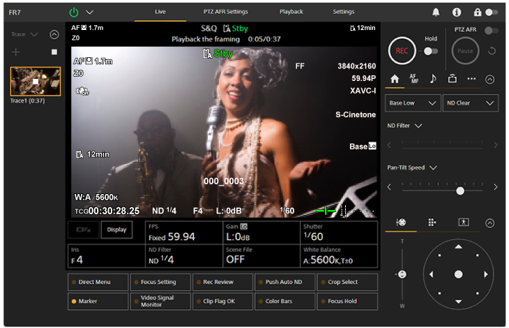 Ställ in hjälpläget PTZ på [Trace] i listrutan högst upp på kontrollpanelen för förinställningsposition.