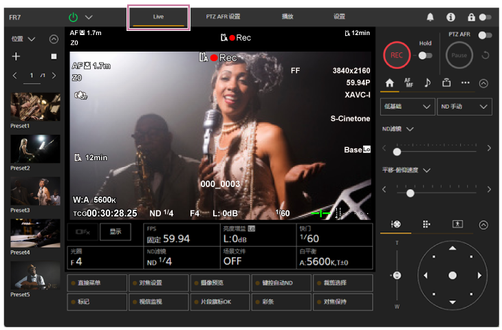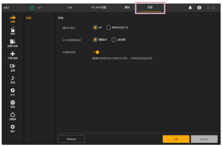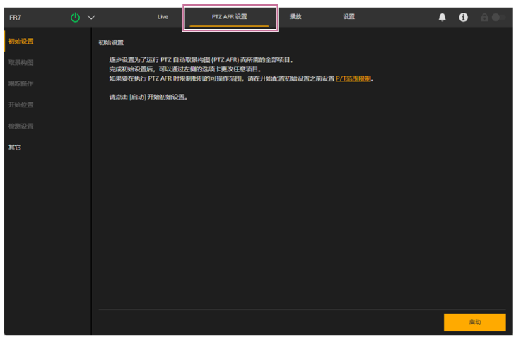 - 有关配置,请参阅“PTZ AFR设置屏幕的结构”和“配置PTZ自动取景构图初始设置”。