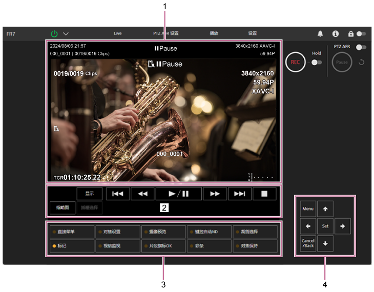 使用GUI控制面板可操作摄像机菜单、片段播放和其他功能。