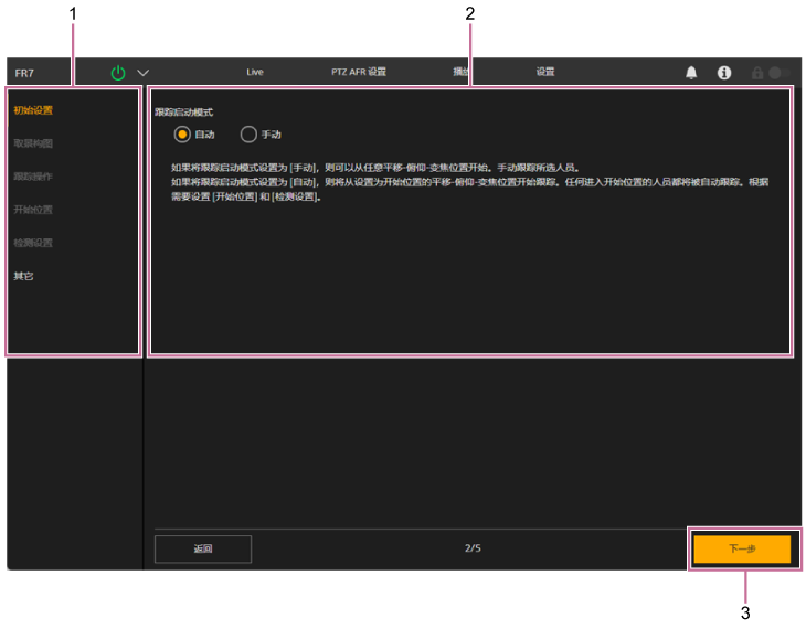 此主题介绍PTZ自动取景构图设置屏幕的结构。