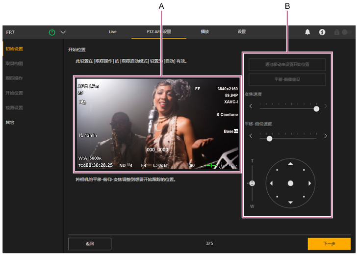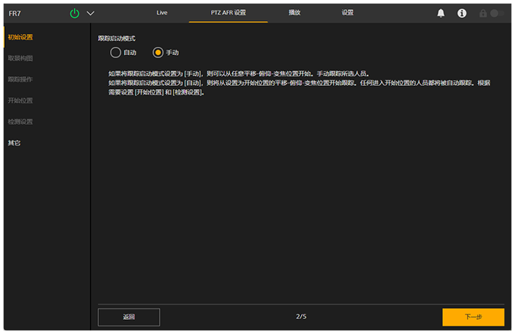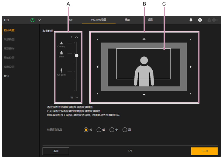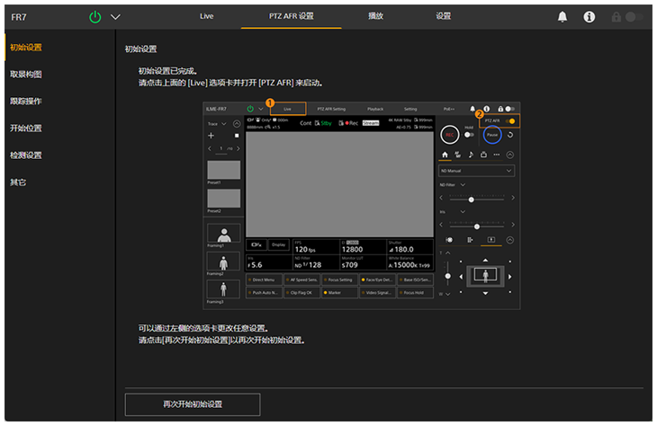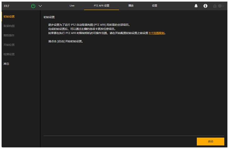 随即会显示PTZ AFR设置屏幕的[初始设置]屏幕。