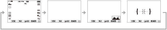 Display All Info. → No Disp. Info. → Histogram → Level → Display All Info.