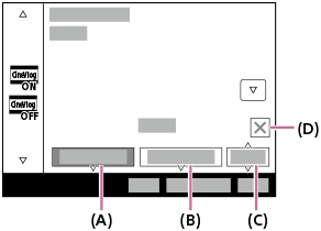 - Αγγίξτε το εικονίδιο Κλεισίματος για να αποκρύψετε τα υπομενού [Εμφάνιση], [Διάθεση] και [Ταχύτητα μετάβασης AF]. Αφού τα αποκρύψετε, μπορείτε να επανεμφανίσετε τα υπομενού κρατώντας πατημένο το εικονίδιο