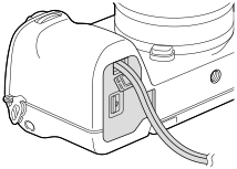 Når du bruker flerbatteriadaptersettet, må du sette inn innpluggingsplaten i sporet for innsetting av batteri og deretter føre ledningen gjennom tilkoblingsplatedekselet.