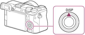 - Hvis du vil bytte informasjonen som vises i søkeren, trykker du på DISP-knappen mens du ser inn i søkeren.
