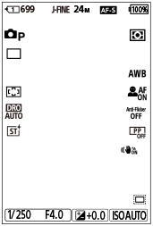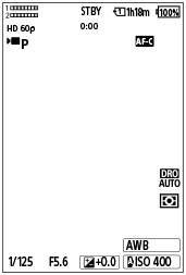 - Нижче наведено приклад дисплея, коли для параметра [Нал.DISP(Відоб.ек.)] установлено значення [Відобр. всю інф.] і значки сенсорного керування приховані.