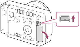 - 메모리 카드 커버 위의 스위치를 밀어서 커버를 열어 주십시오.