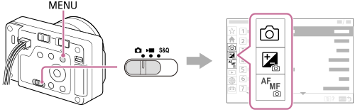 정지 이미지/동영상/S&Q 스위치와 메뉴 화면 사이의 관계
