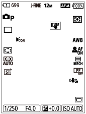 Tryb pomiaru] ma ustawienie [Wielopunktowy]. - Wyświetlana, gdy w pozycji [Wspomaganie AF] ustawiono opcję [Automatyczne] i aparat wykryje, że wymagane jest Wspomaganie AF.