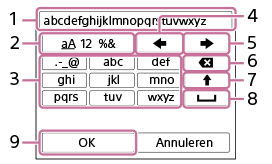 Wanneer het handmatig invoeren van tekens is vereist, wordt een toetsenbord afgebeeld op het scherm. Voor voorbeelden van functies die gebruikmaken van het toetsenbord, raadpleegt u "Verwant onderwerp" onderaan deze pagina.
