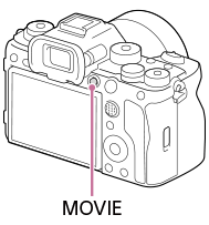 - Voor de ononderbroken opnameduur van bewegende beelden, raadpleegt u "Opnameduur van bewegende beelden". Nadat het opnemen van bewegende beelden klaar is, kunt u opnieuw bewegende beelden opnemen door nogmaals op de MOVIE-knop te drukken. Het opnemen kan stoppen om het apparaat te beschermen, afhankelijk van de temperatuur van het apparaat of de accu.