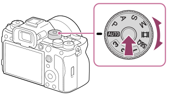 - Draai de functiekeuzeknop terwijl u de ontgrendelknop van de functiekeuzeknopvergrendeling in het midden van de functiekeuzeknop ingedrukt houdt.