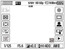Sveip til høyre eller venstre på skjermbildet for opptak i standbymodus. Berøringsfunksjonsikonene vises på venstre og høyre side av skjermen i henhold til innstillingene for [Sveip til høyre] og [Sveip til venstre] under [Opptaksskjerm].