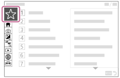Εάν καταχωρίζετε λειτουργίες που χρησιμοποιούνται συχνά στη λειτουργία λήψης ή στη λειτουργία αναπαραγωγής στο μενού Function (Λειτουργία), μπορείτε να εμφανίσετε τις καταχωρισμένες λειτουργίες στην οθόνη απλώς πατώντας το κουμπί Fn (Λειτουργία). Στην οθόνη του μενού λειτουργιών, μπορείτε να ανακαλέσετε τη λειτουργία που επιθυμείτε να χρησιμοποιήσετε επιλέγοντας τα εικονίδια.
