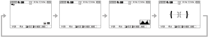 Display All Info. → No Disp. Info. → Histogram → Level → Display All Info.