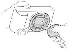 - Μην χρησιμοποιήσετε φυσερό τύπου ψεκασμού, επειδή μπορεί να πιτσιλίσει το εσωτερικό του σώματος της κάμερας.