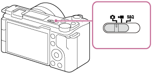 - Ställ in stillbild/film/S&Q-omkopplaren på