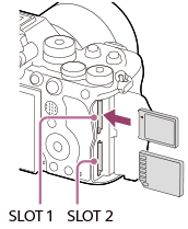 - Både spor 1 og spor 2 støtter CFexpress Type A-minnekort og SD-minnekort.
