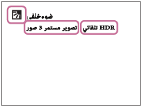وجّه الكاميرا نحو الهدف.عندما تتعرف الكاميرا على أحد المشاهد، يظهر رمز التعرف على المشهد على الشاشة. في حالة الضرورة، يظهر أيضًا كل من وظيفة تصوير مناسبة للمشهد الذي يتم التعرف عليه وعدد مرات تحرير الغالق.