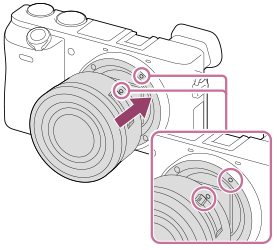 - Úgy helyezze fel az objektívet, hogy az objektív és a fényképezőgép két fehér jelölése (illesztőjelek) egy vonalba essenek.