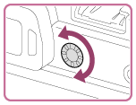 - A látásának megfelelően módosítsa a dioptriabeállító tárcsát, hogy a kép élesen jelenjen meg a keresőben. Ha nehéz elfordítani a dioptriabeállító tárcsát, távolítsa el a nézőketakarót, és utána állítson a tárcsán.