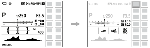 (Felvétel beállítások2) → [DISP Gomb] → [Kijelző]. -