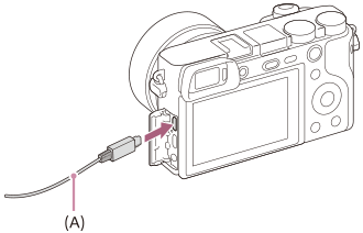 (Nastavení) je nastaveno na [Hrom.paměť]. - Fotoaparát připojte k počítači kabelem mikro USB (přiložen) (A) .