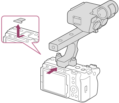 - Αφαιρέστε το κάλυμμα υποδοχής αξεσουάρ και κατόπιν τοποθετήστε τη μονάδα λαβής XLR στην υποδοχή αξεσουάρ πολλαπλών συνδέσεων.