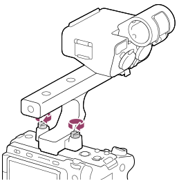 - Κατά τη σύνδεση της λαβής στη μηχανή, στερεώστε καλά τις δύο βίδες στερέωσης της λαβής. Η χρήση της λαβής χωρίς να έχετε στερεώσει τις βίδες μπορεί να προκαλέσει ζημιά στον ακροδέκτη της υποδοχής αξεσουάρ πολλαπλών συνδέσεων ή να προκαλέσει πτώση της φωτογραφικής μηχανής.