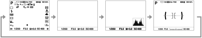 Display All Info. → No Disp. Info. → Histogram → Level → Display All Info.