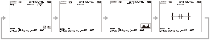 Με το πάτημα του κουμπιού DISP (Ρύθμιση οθόνης), μπορείτε να αλλάξετε το περιεχόμενο που εμφανίζεται στην οθόνη κατά τη λήψη και την αναπαραγωγή. Η εμφάνιση αλλάζει κάθε φορά που πατάτε το κουμπί DISP.