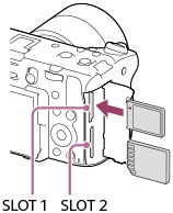 - La ranura 1 admite tarjetas de memoria CFexpress Type A y tarjetas de memoria SD. La ranura 2 admite tarjetas de memoria SD solamente.