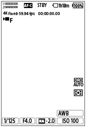 Formato archivo] está ajustado a [4K]. - Número de ranura de la tarjeta de memoria que graba los datos de la toma y tiempo de película grabable