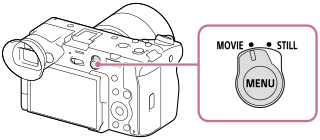 - Zet de stilstaande/bewegende beelden-schakelaar in de stand MOVIE (Bewegende beelden) om de bewegend-beeldopnamefunctie te selecteren.