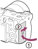 - Пересуваючи перемикач на кришці відсіку для карти пам'яті у напрямку