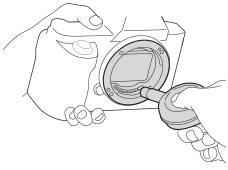 - امسك الكاميرا بحيث تواجه الأسفل بدرجة بسيطة حتى يتساقط الغبار للخارج.