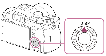 عن طريق الضغط على الزر DISP (إعداد العرض)، يمكنك تغيير المحتوى المعروض على الشاشة أثناء التصوير والعرض. يتم تبديل العرض في كل مرة يُضغط فيها على الزر DISP. يمكن ضبط عرض منظار الرؤية وعرض الشاشة من أجل التصوير بشكل منفصل.