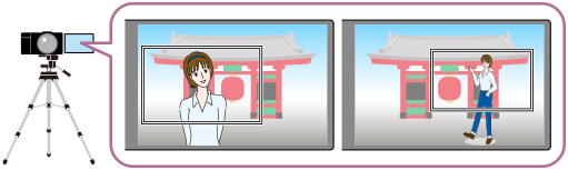 Under filmoptagelse eller streaming ændrer kameraet automatisk kompositionen ved at følge det genkendte motiv og beskærer, så selvom kameraet er fastsat, kan du optage med kameraarbejdet (automatisk indrammet optagelse).