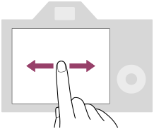 Durch Berühren des Monitors können Sie Bedienungsvorgänge, wie z. B. die Fokussierung auf dem Aufnahmebildschirm und die Bedienung des Wiedergabebildschirms, intuitiv durchführen. Sie können auch mit Wischgesten steuern, ob das Menü Fn, Touch-Symbole usw. angezeigt oder ausgeblendet werden.