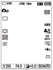 Tässä osiossa selitetään ruutunäyttö, kun kuvaustilana on