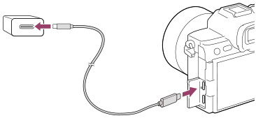 Συνδέστε τον ακροδέκτη USB Type-C της φωτογραφικής μηχανής στον ακροδέκτη USB Type-C μιας συσκευής συμβατής με USB PD (USB Power Delivery) με ένα καλώδιο USB Type-C που διατίθεται στο εμπόριο (USB-C® – USB-C).