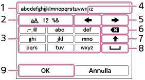 Ad ogni pressione del tasto, il tipo di carattere cambia tra lettere dell’alfabeto, numeri e simboli. - Tastiera